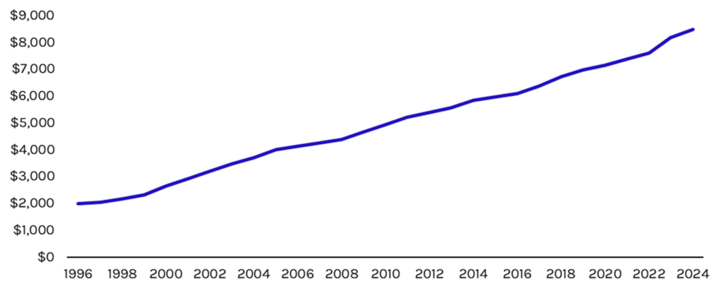 Exhibit 1: Average Premium for Single Coverage, 1996-2024 ($)
