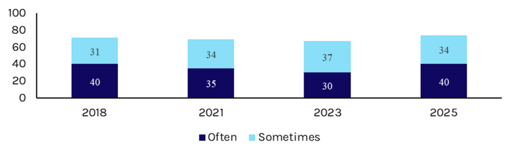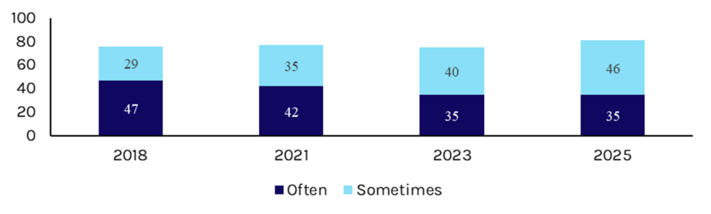 Amid interoperability efforts from the CMS and the Assistant Secretary for Technology Policy/Office of the National Coordinator for Health IT (ASTP/ONC), there is concern that the total volume of faxes will decrease. However, February 2026 data from the agency indicate that the percentage of hospital systems that sometimes or often send (Exhibit 1) and receive (Exhibit 2) summary of care records outside the system through mail or fax has moderately increased since 2018. This comes despite growing interoperability efforts, when in the same time window, the percentage of hospital systems sometimes or often sending summary of care records outside the system via local health information exchange (Exhibit 3) and national network (Exhibit 4) has increased by 20% and 42%, respectively.