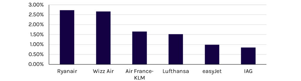 Exhibit 3: Estimated Cost of ReFuelEU’s e-SAF Mandate on Airlines in 2030 (as percentage of 2025 revenue)
