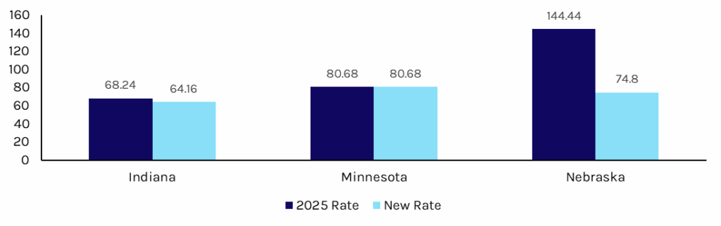 Note: Nebraskaโs rate cut was effective in August 2025. Minnesota has not introduced a rate cut.